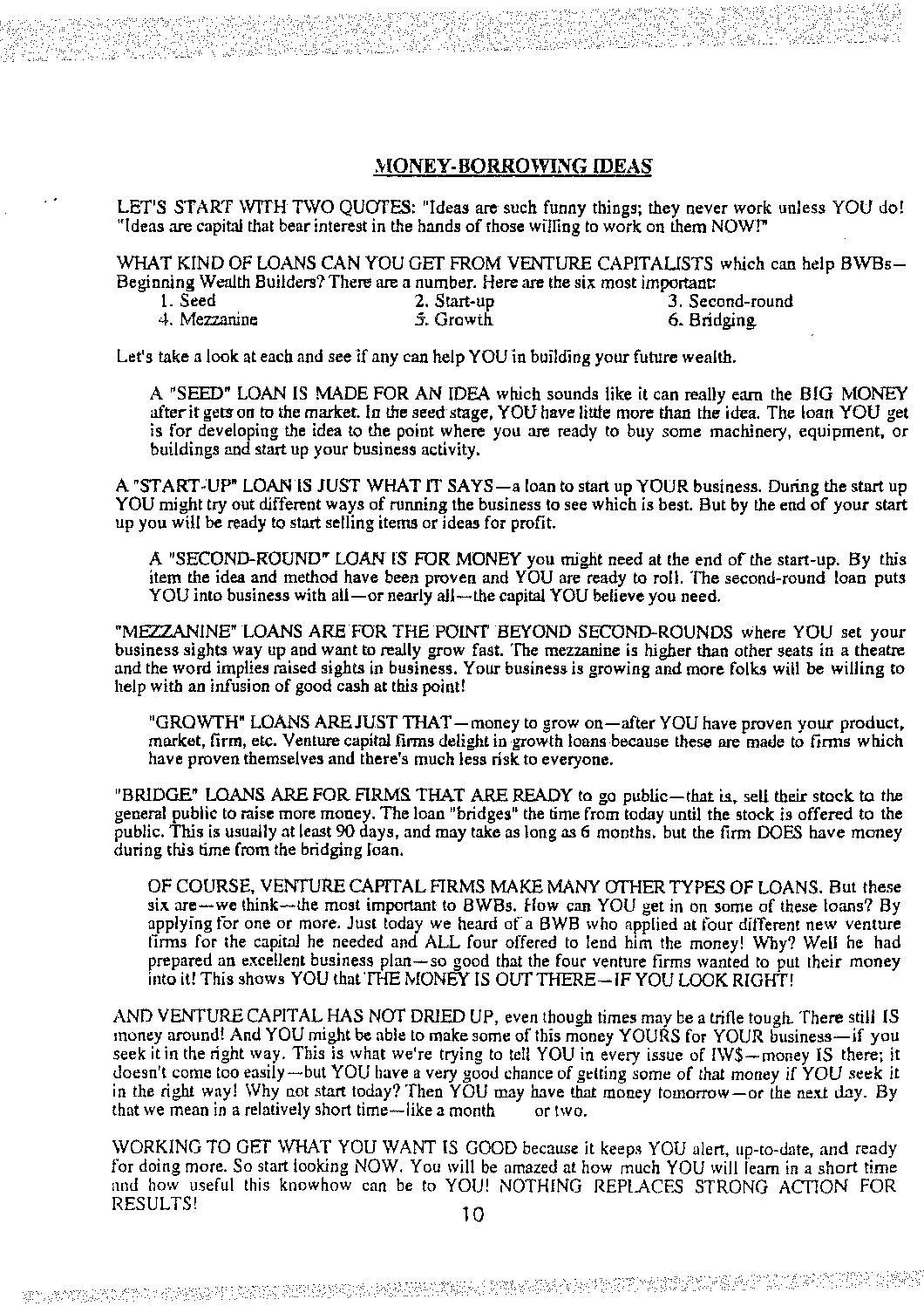 And The IWS Compendium of Instant Money Ideas for Finding Business and Real Estate Capital shows you how to do this — step-by-step, so that you can get the money you need to build the business you want so that everyone — you, the investors, and the general public — benefit.