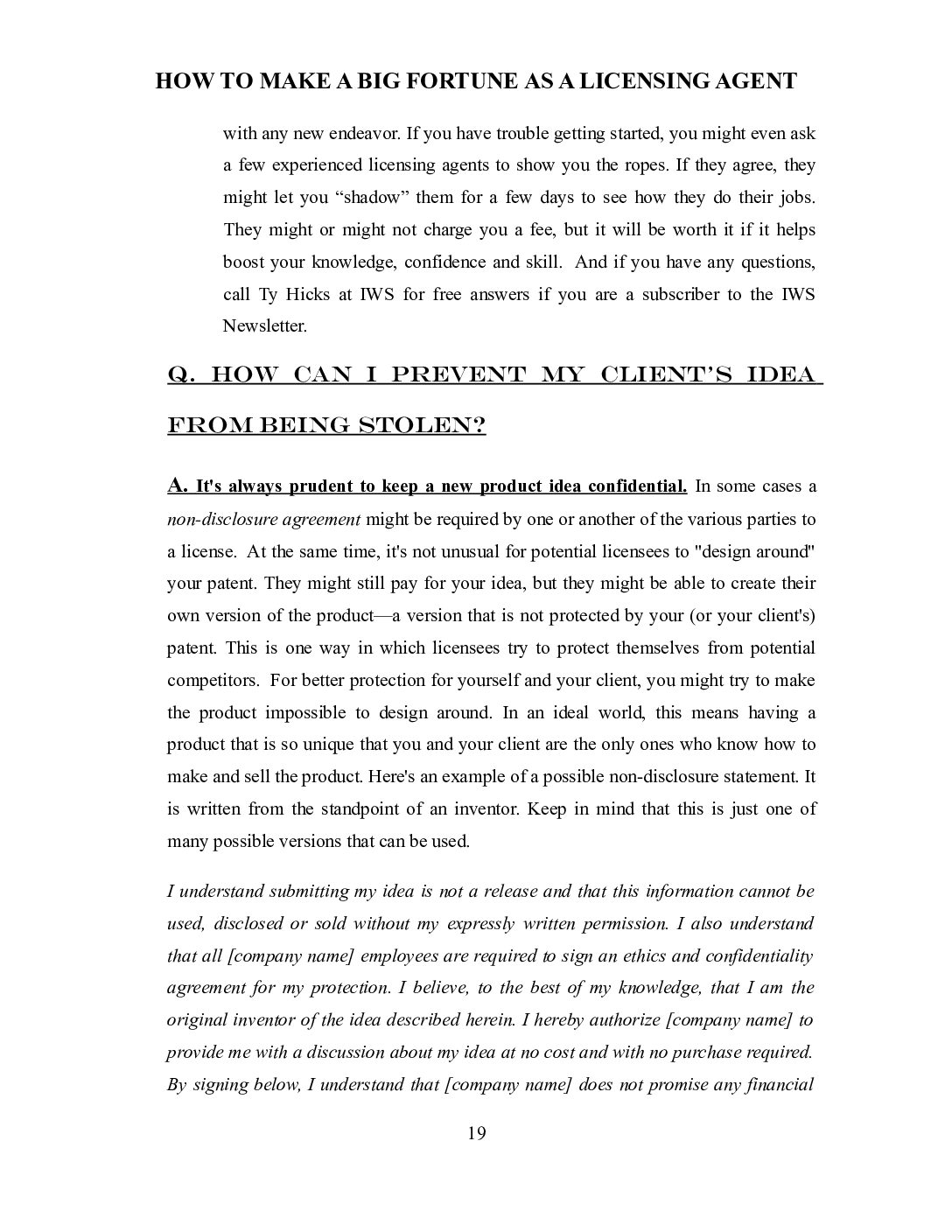 IWS-34 : The IWS Guide to How to Make a Big Fortune as a Licensing Agent