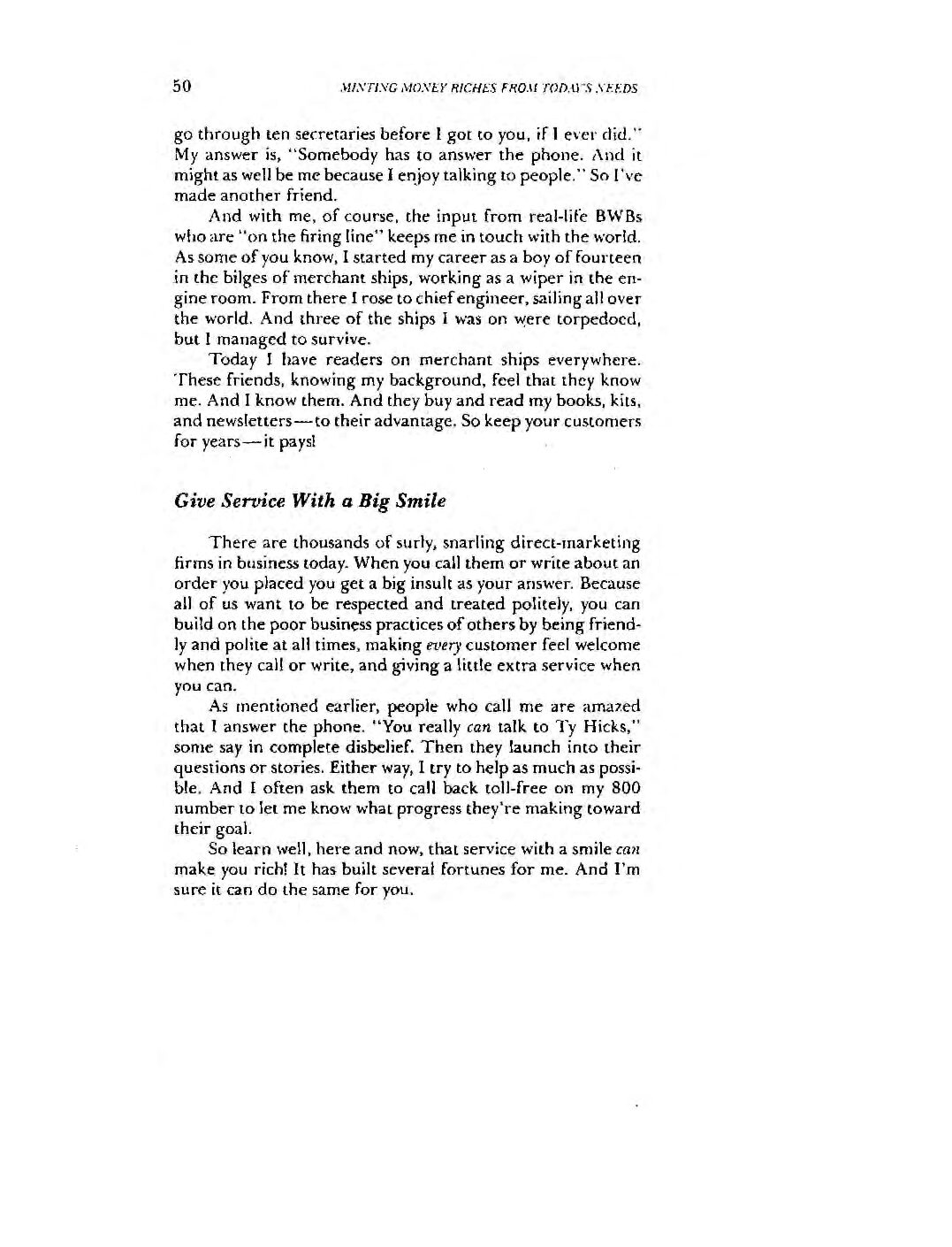 Every method in this book is practical — it does work be-cause one or more of my millions of readers has used it to build wealth today! Toss away your musty, soggy, wealth-build-ing books of yesteryear. You’re at the close of the twentieth century when things, and people, are different!