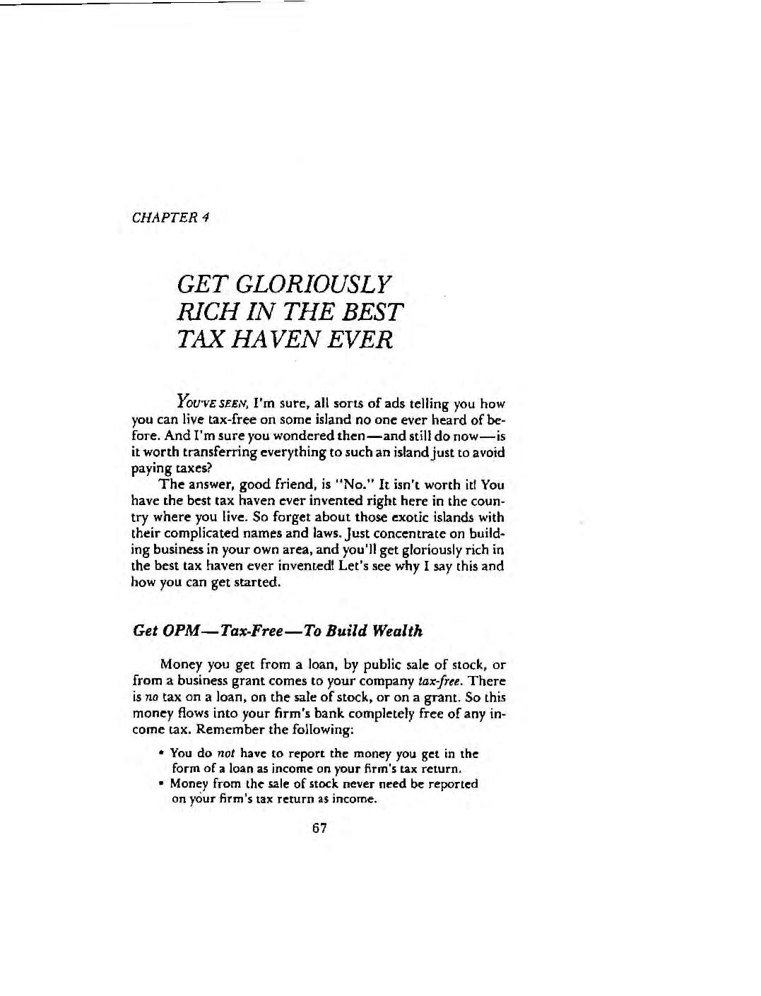 This book shows you how to get rich today, meeting all the above criteria. It gives you sure-fire “electronic” techniques to build riches quickly and with certainty using Other People’s Money — OPM, I cal it. With this book you will: