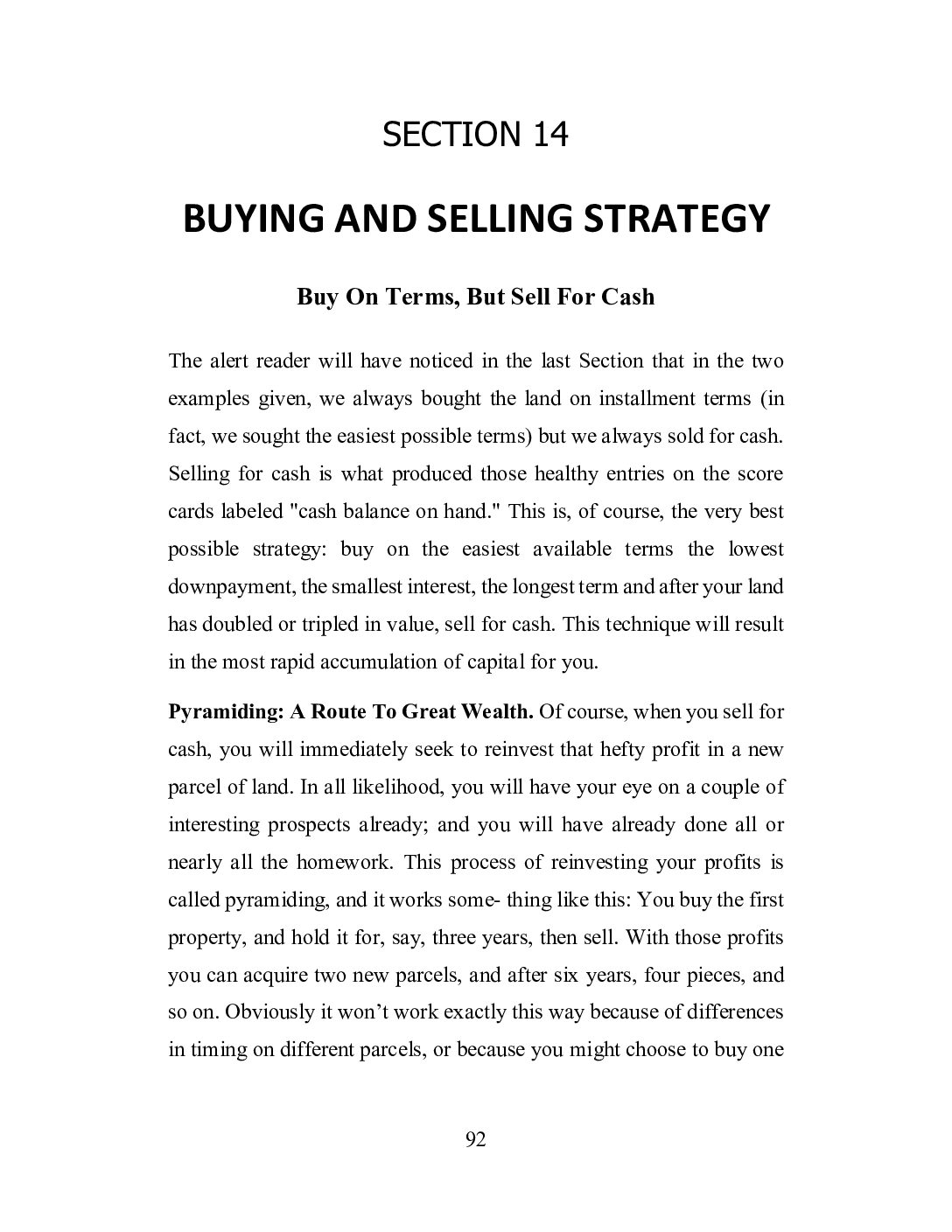 • How to finance land purchases . . . the critical importance of leverage, and how to use it effectively.